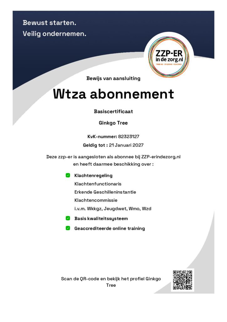 10.3 Daarnaast is Ginkgo Tree aangesloten bij ZZP-erindezorg en kan voor zorg-gerelateerde klachten of geschillen een melding gedaan worden bij deze instantie.